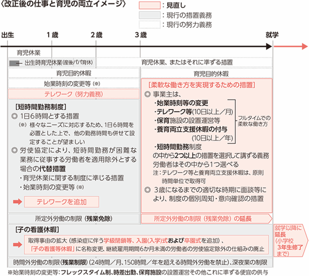 望ましい * 子に障害がある場合等で希望するときは、短時間勤務制度や子の看護等休暇等の利用可能期間を延長すること