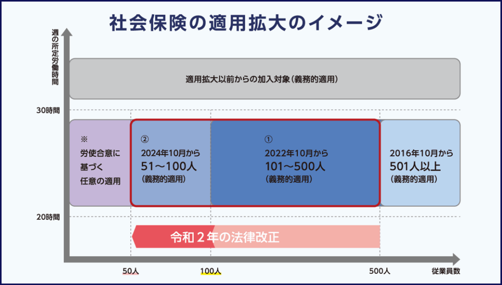 2022年10月から、従業員数101人~500人の企業で働くパート・アルバイトが新たに社会保険の適用になりました。