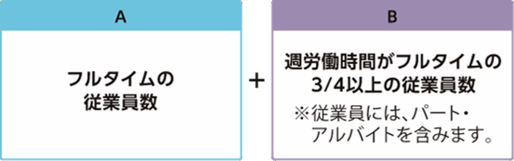 Bは週労働時間及び月労働日数がフルタイムの3/4以上の従業員数です。